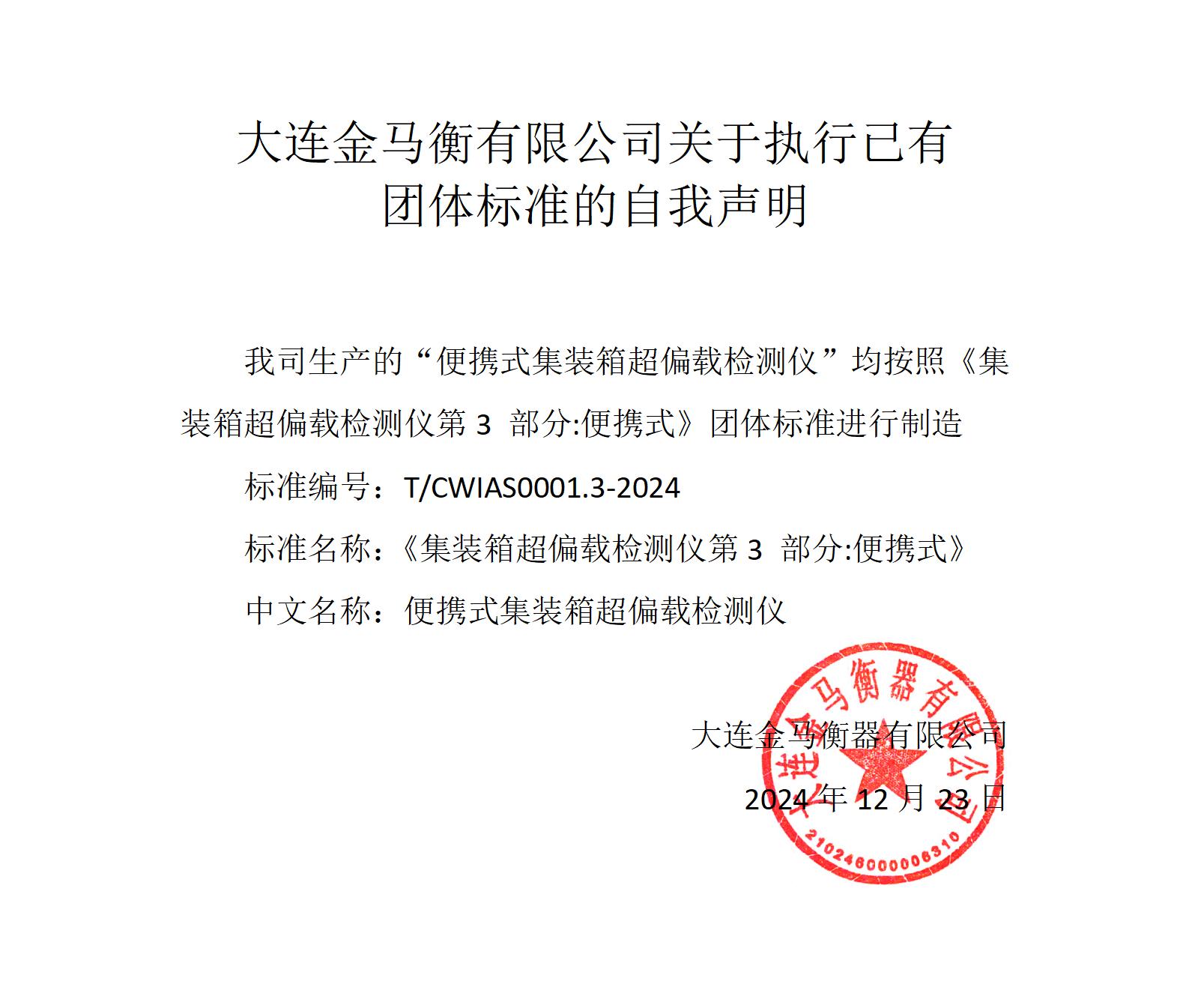 【聲明】大連金馬衡有限公司關(guān)于執(zhí)行已有團體標準的自我聲明