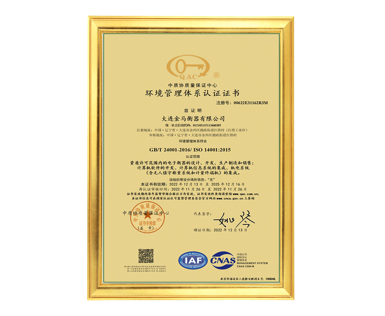 大連金馬衡器校準實驗室(CNAS)